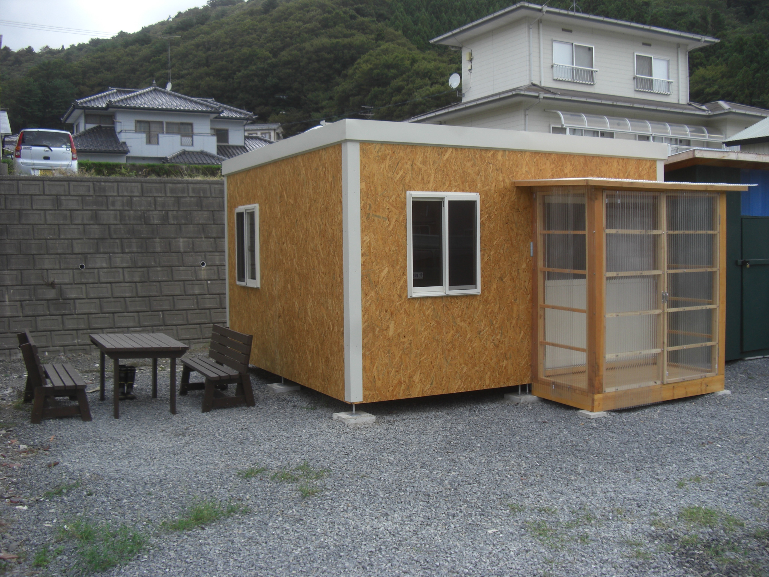 出島の漁師達は女川湾に立ち寄る用事が頻繁に生じます。そのため、女川湾にも「拠点」となる施設が必要。断熱工事をしていないこの「納屋」は、協働の「物置」として使われるそうです。